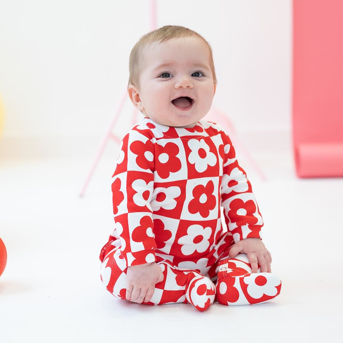 - Beyaz ve kırmızı renkte, çiçek desenli