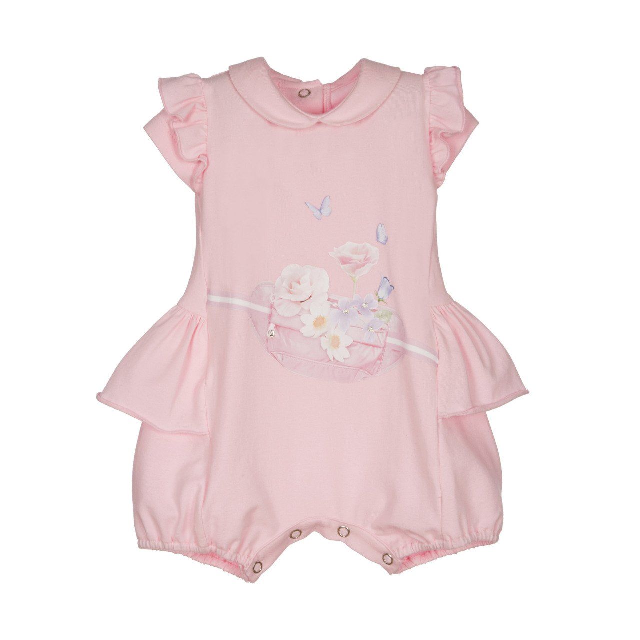- Pembe renkte, ön tarafta çiçek ve kelebek detaylı bel çantası baskılı