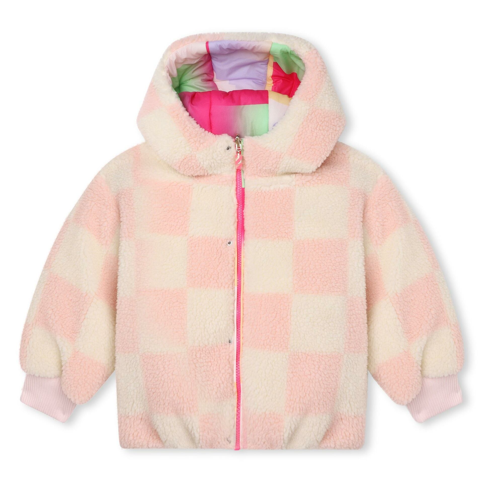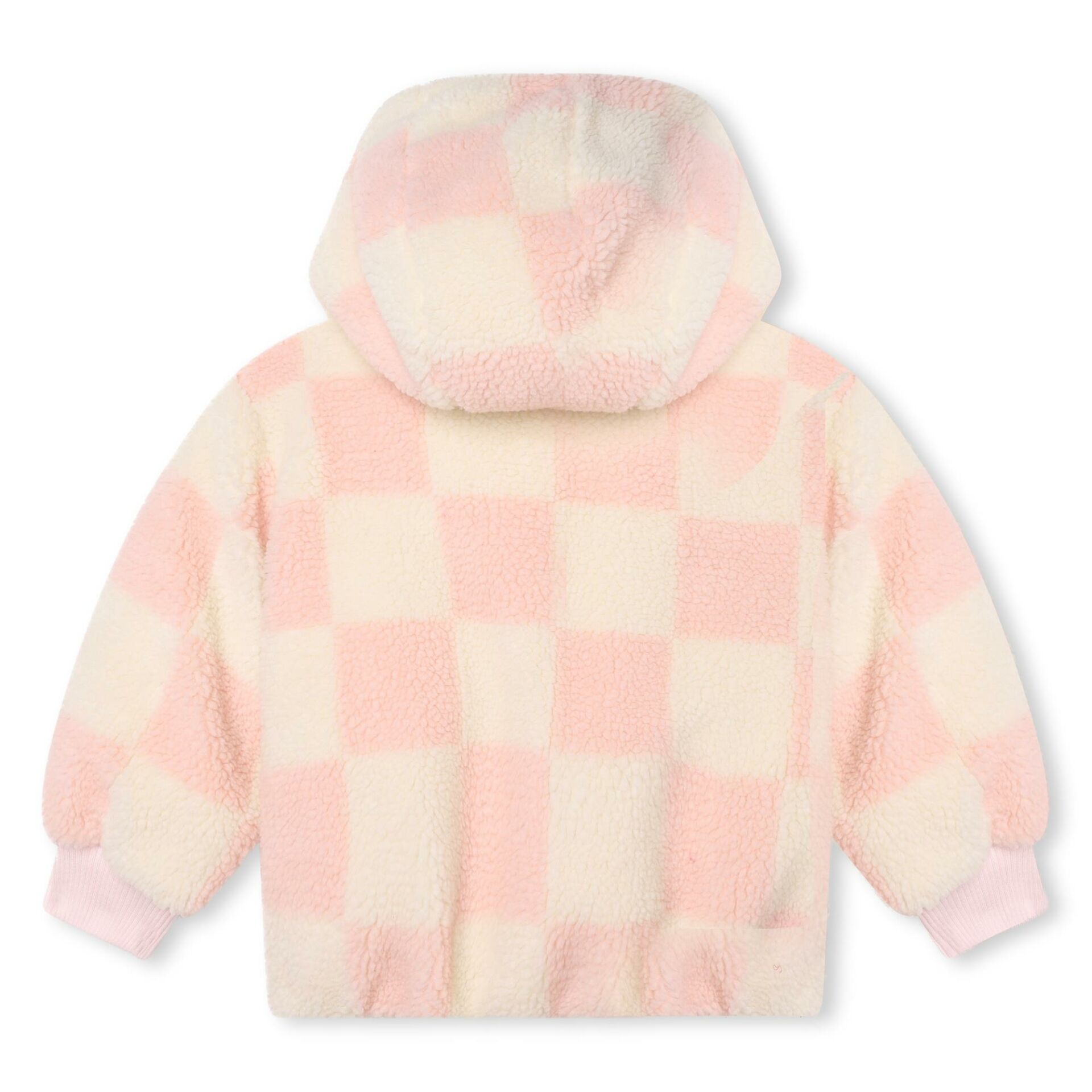 - Diğer tarafı pembe-beyaz kare desenli ve peluş detaylı