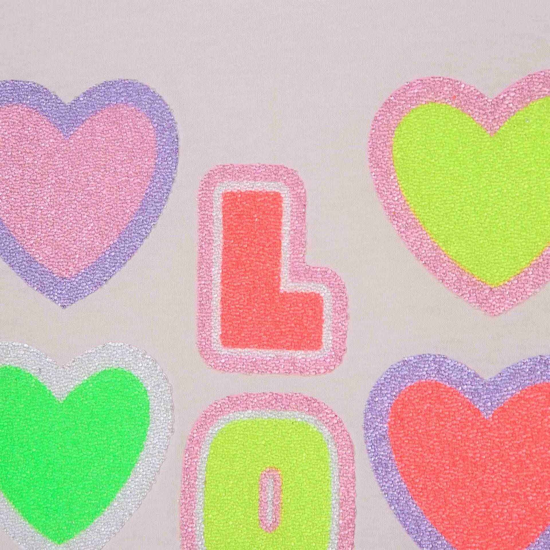 - Neon renklerde işlemeli kalp ve yazı detaylı
