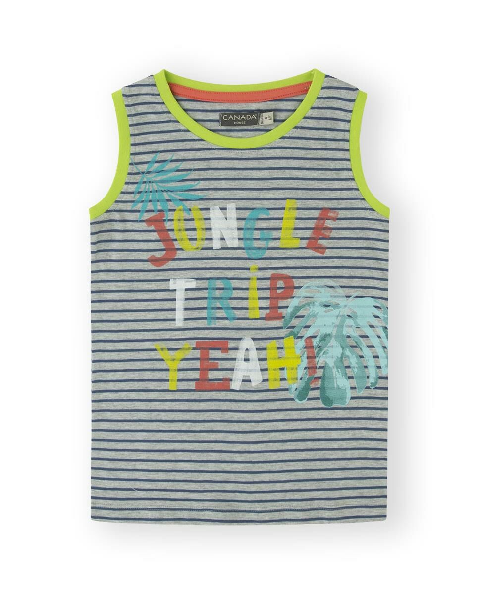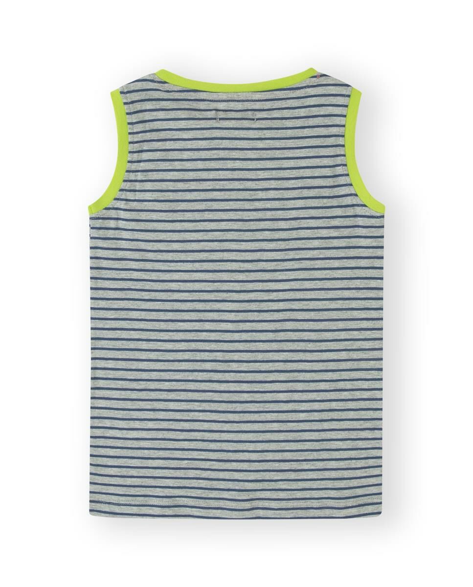 - Sarı şerit detaylı, bisiklet yaka, kolsuz T-shirt.