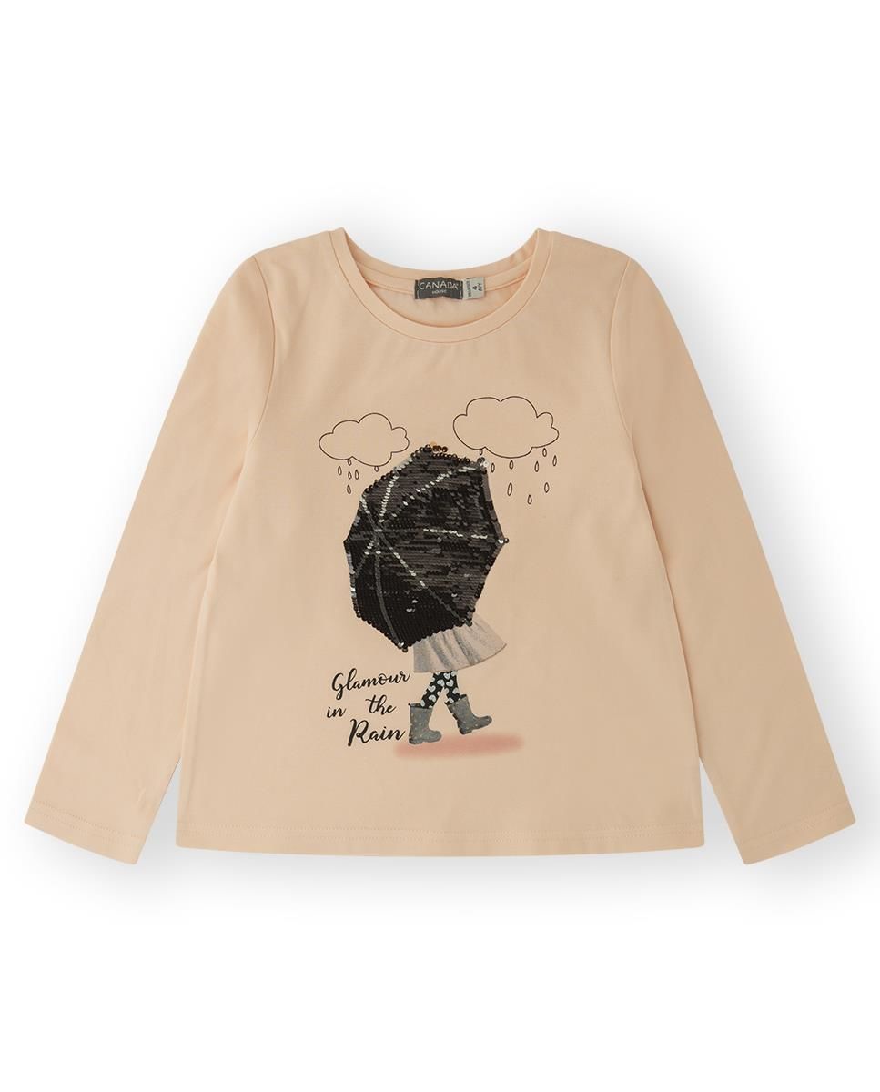 Canada House İşlemeli Şemsiyeli Kız Çocuk T-shirt