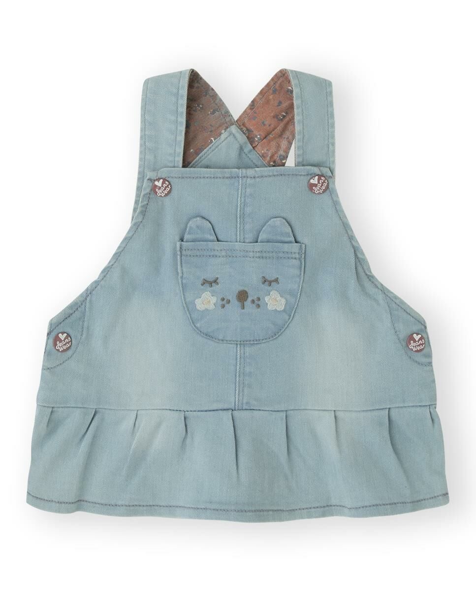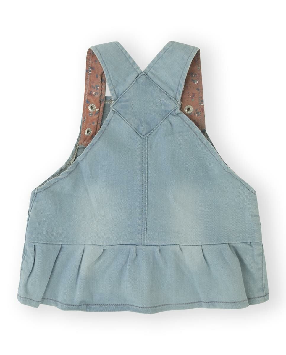 - İç kısmı çiçek desenli, kot salopet elbise.