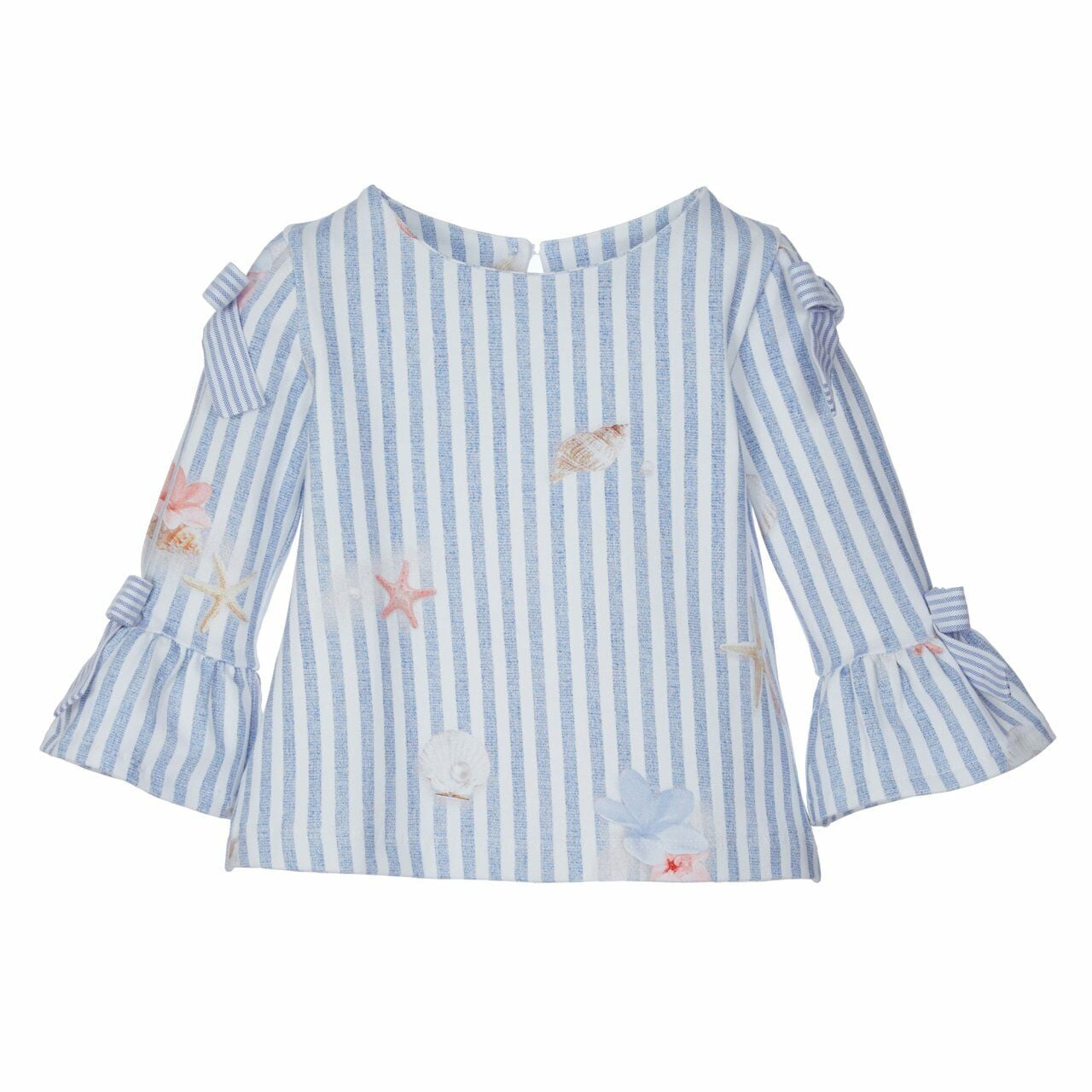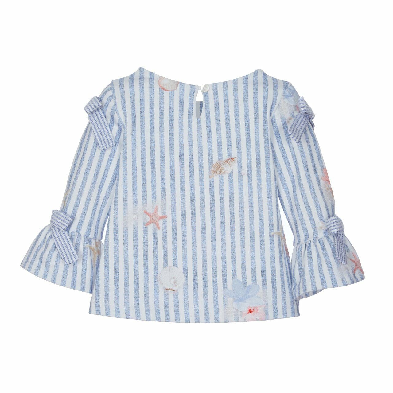 - Mavi - beyaz çizgili desen üzerinde deniz kabukları baskılı