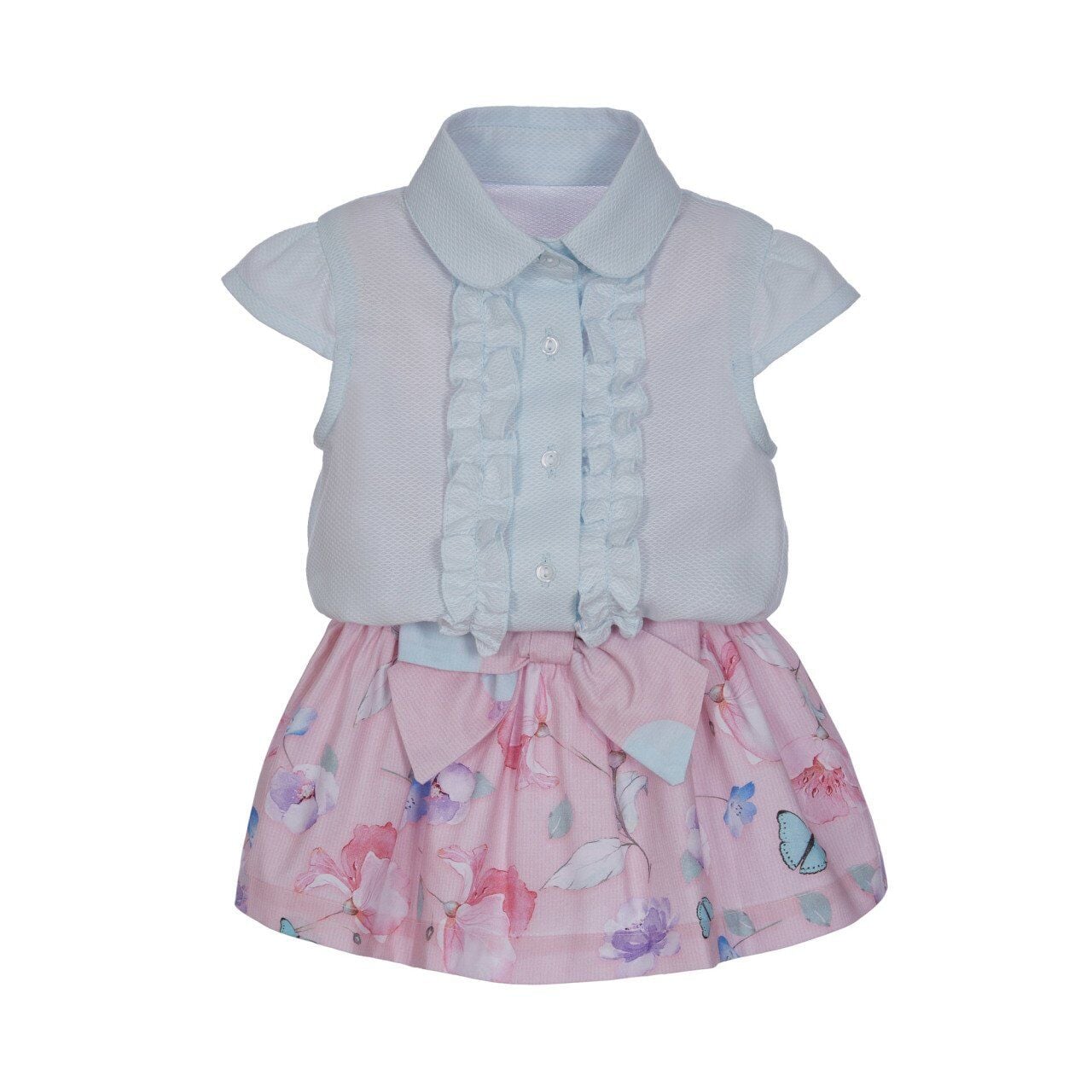 - Üstü pembe, bel kısmında desenli fiyonk detaylı