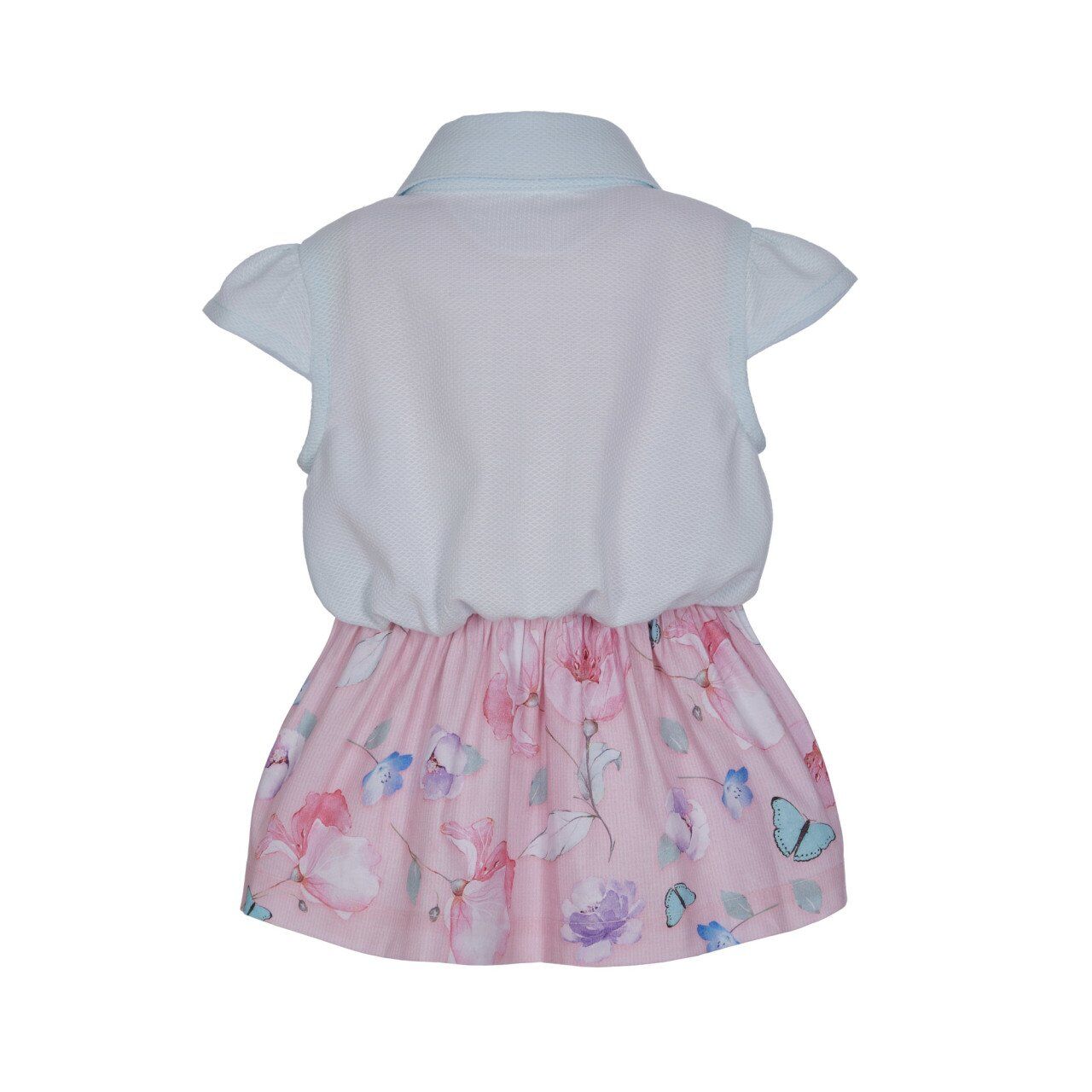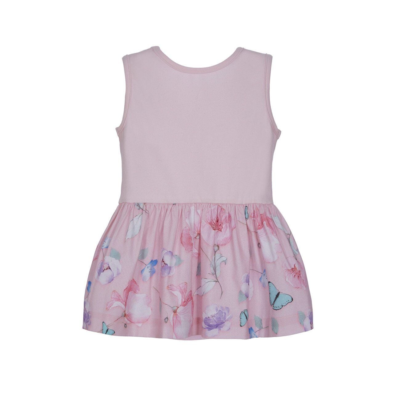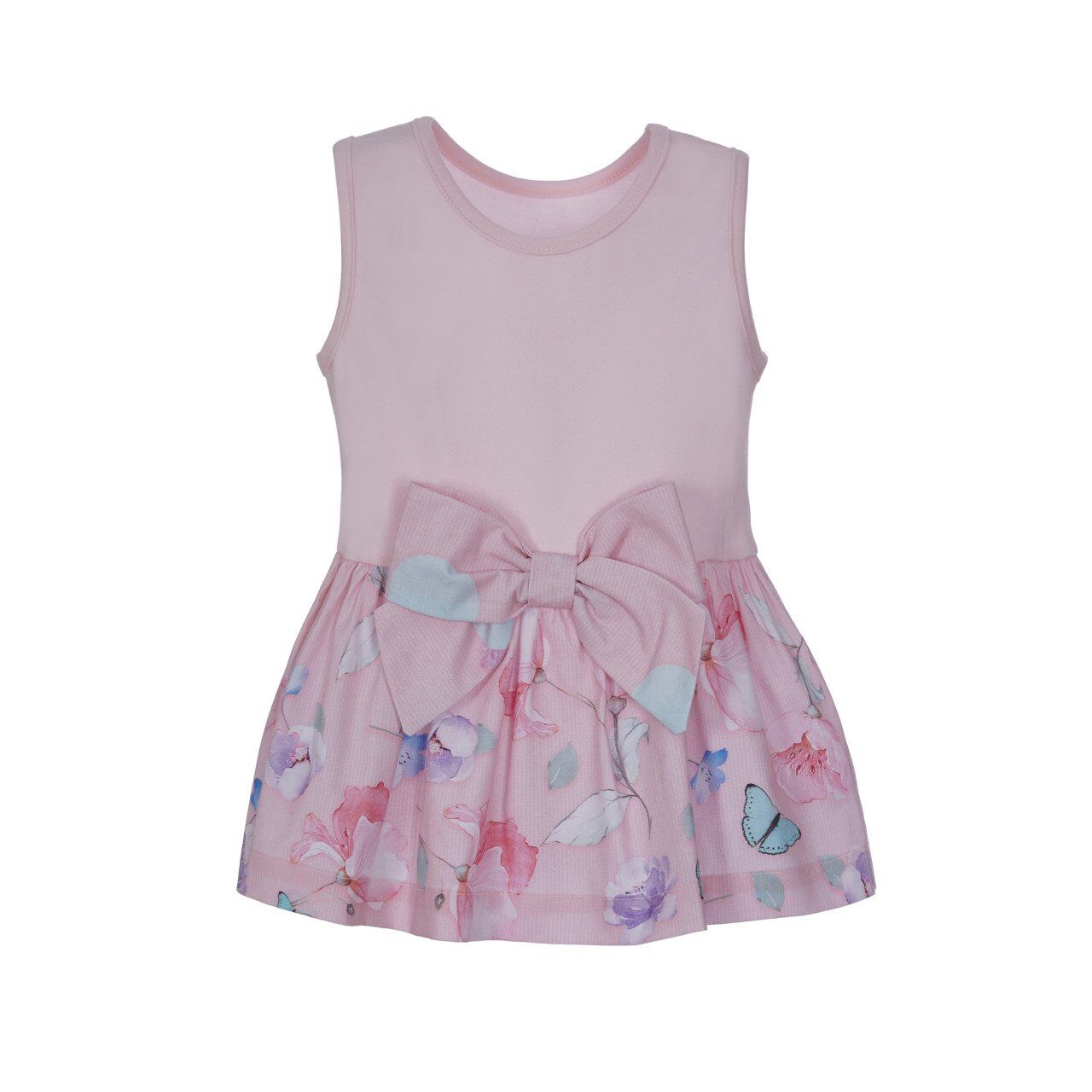 - Alt kısmı pembe - beyaz çizgi üstüne uçuk yeşil puantiye - çiçek - kelebek desenli, kolsuz atlet elbise