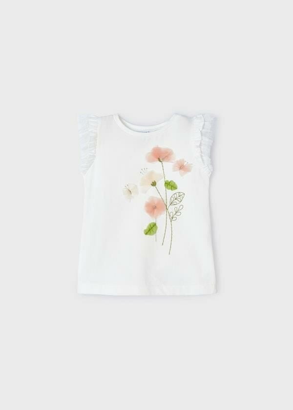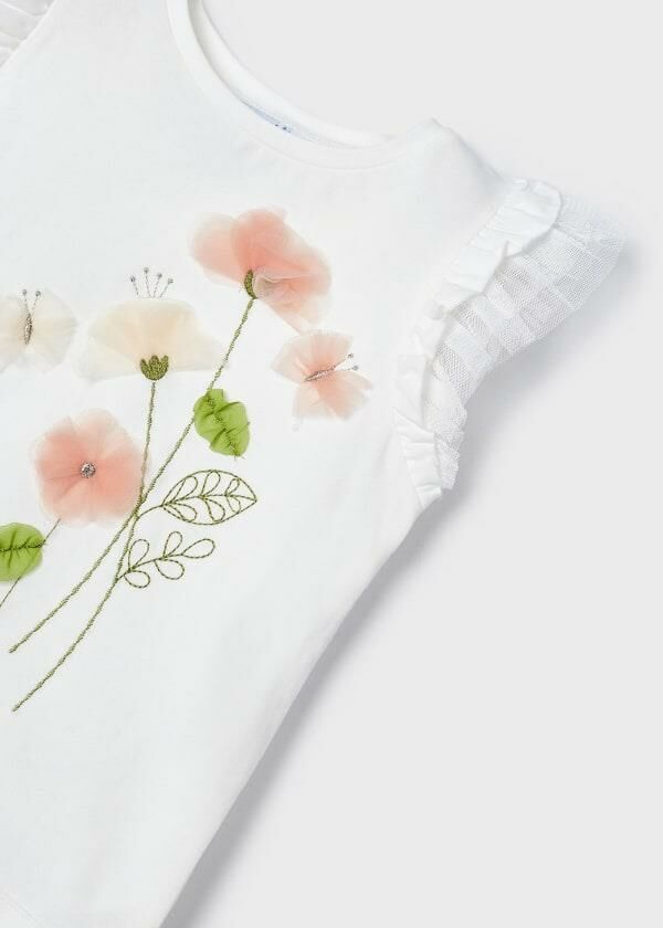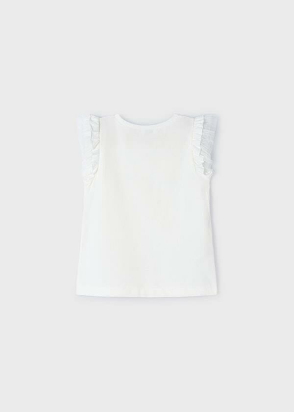 - Omuzları fırfır ve tül detaylı, bisiklet yaka T-shirt.