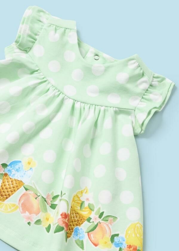 - Etekleri renkli çiçek-meyve-dondurma desenli