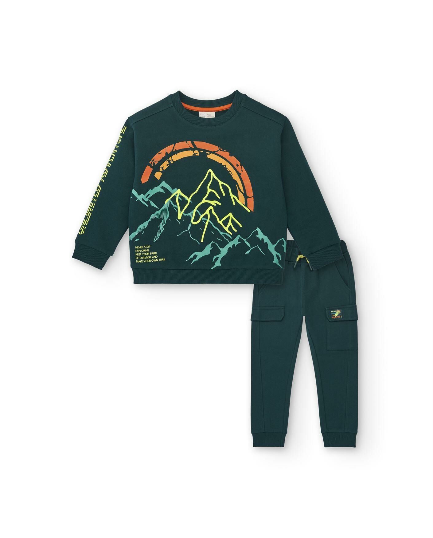 - Yeşil renkte, ön tarafı renkli dağ tema baskılı, kolu yazı detaylı sweatshirt