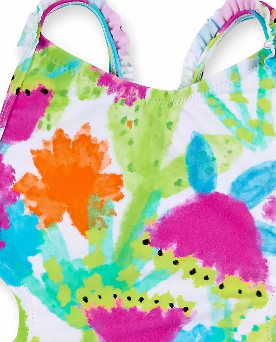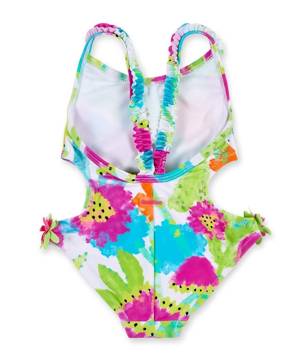 - Askıları fırfırlı, yanları açık ve çiçek detaylı mayo.
