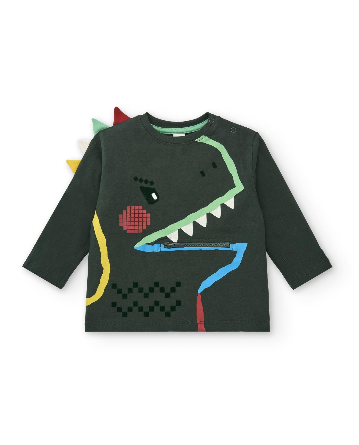 - Omuzu 3D dinazor detaylı, bisiklet yaka, uzun kollu T-shirt.