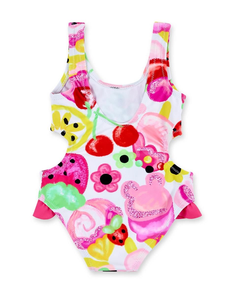 - Yanları açık, fırfır ve pırıltı detaylı mayo.