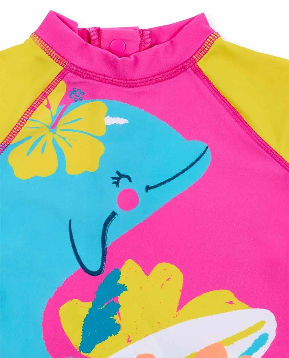 - Pembe renkte, ön tarafı yunus ve çiçek tema baskılı