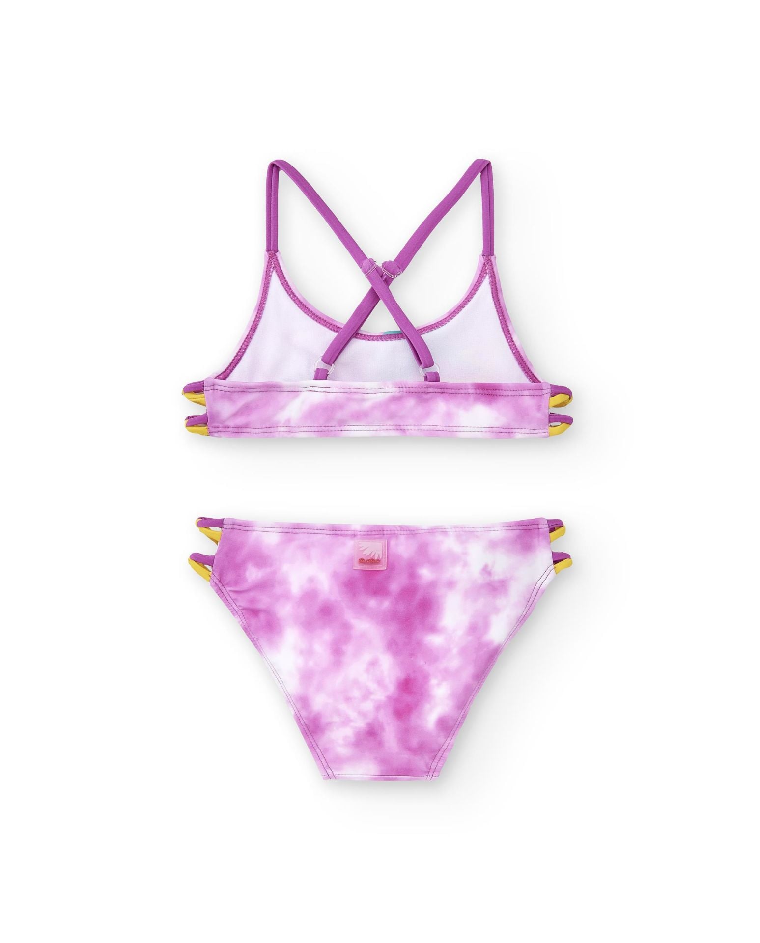 - Yanları dekolteli ve pembe - sarı ip detaylı, sırtı çapraz askılı bikini set.