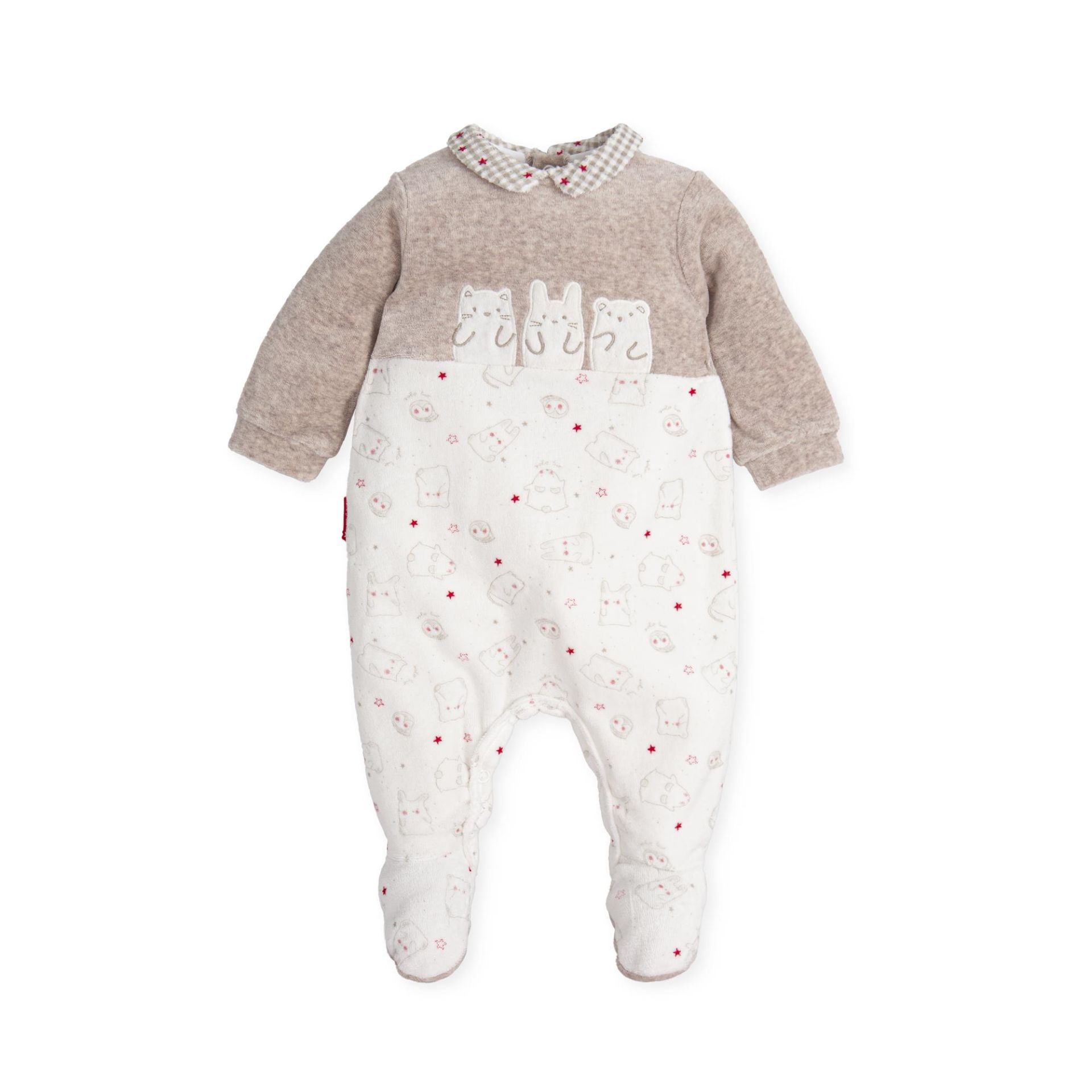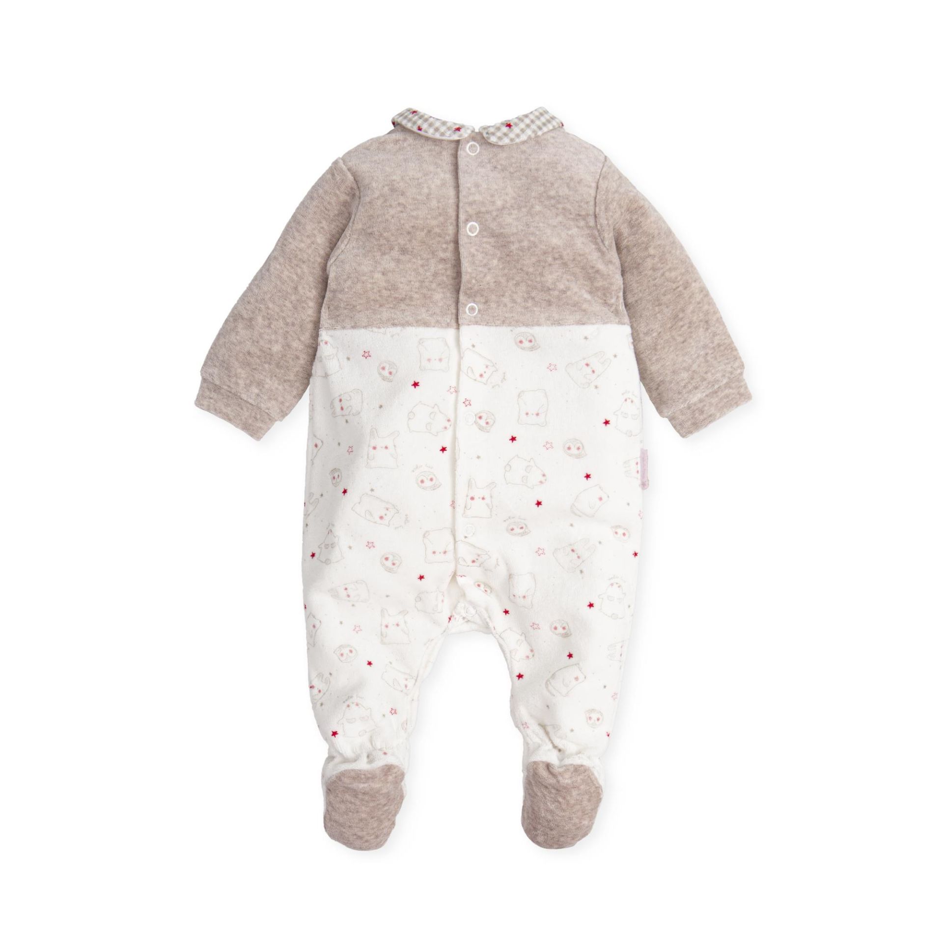 - Kadife dokuda, arkadan çıtçıt düğme kapatmalı, ayaklı bebek tulum.