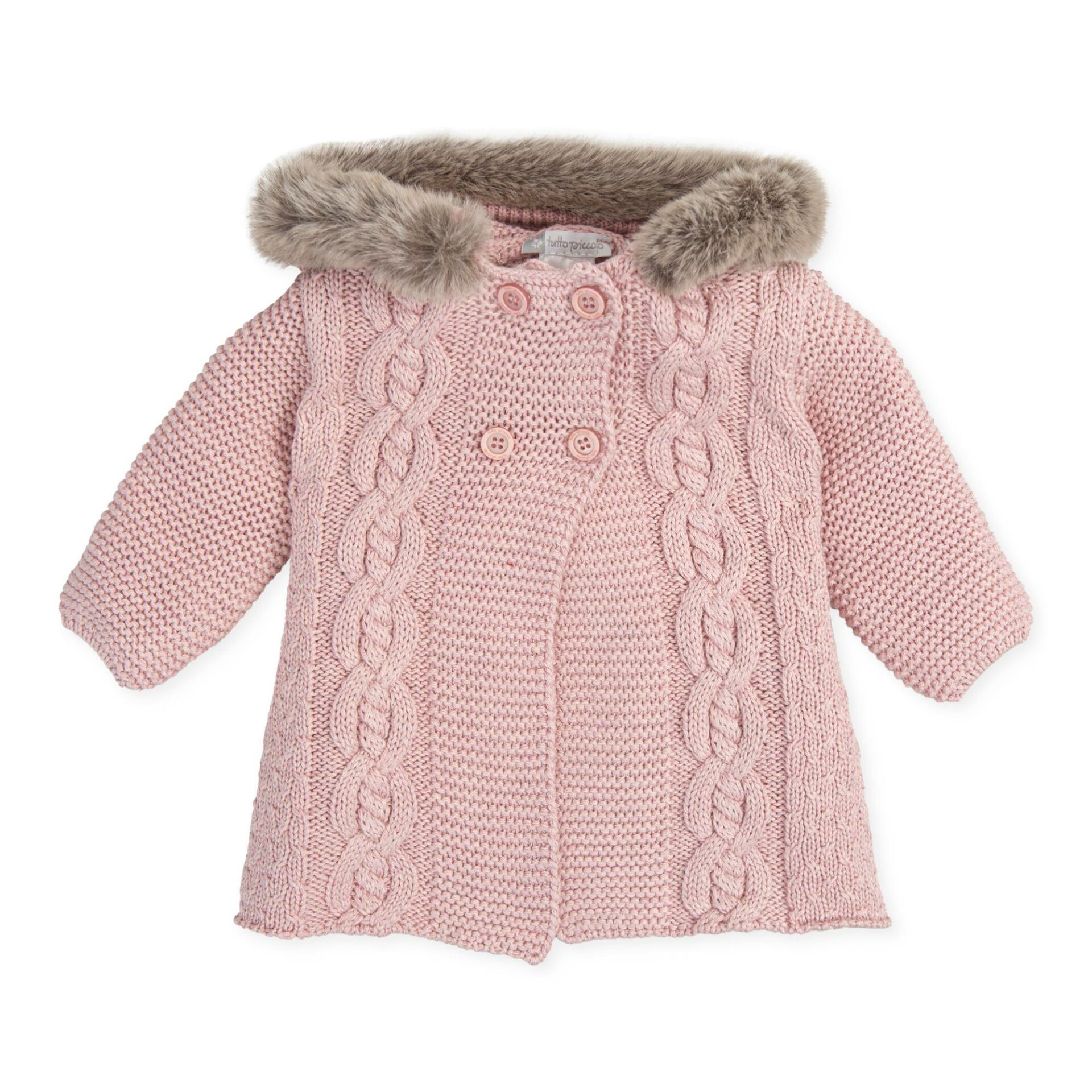 Tutto Piccolo Kürk Kapüşonlu Pembe Kız Bebek Hırka