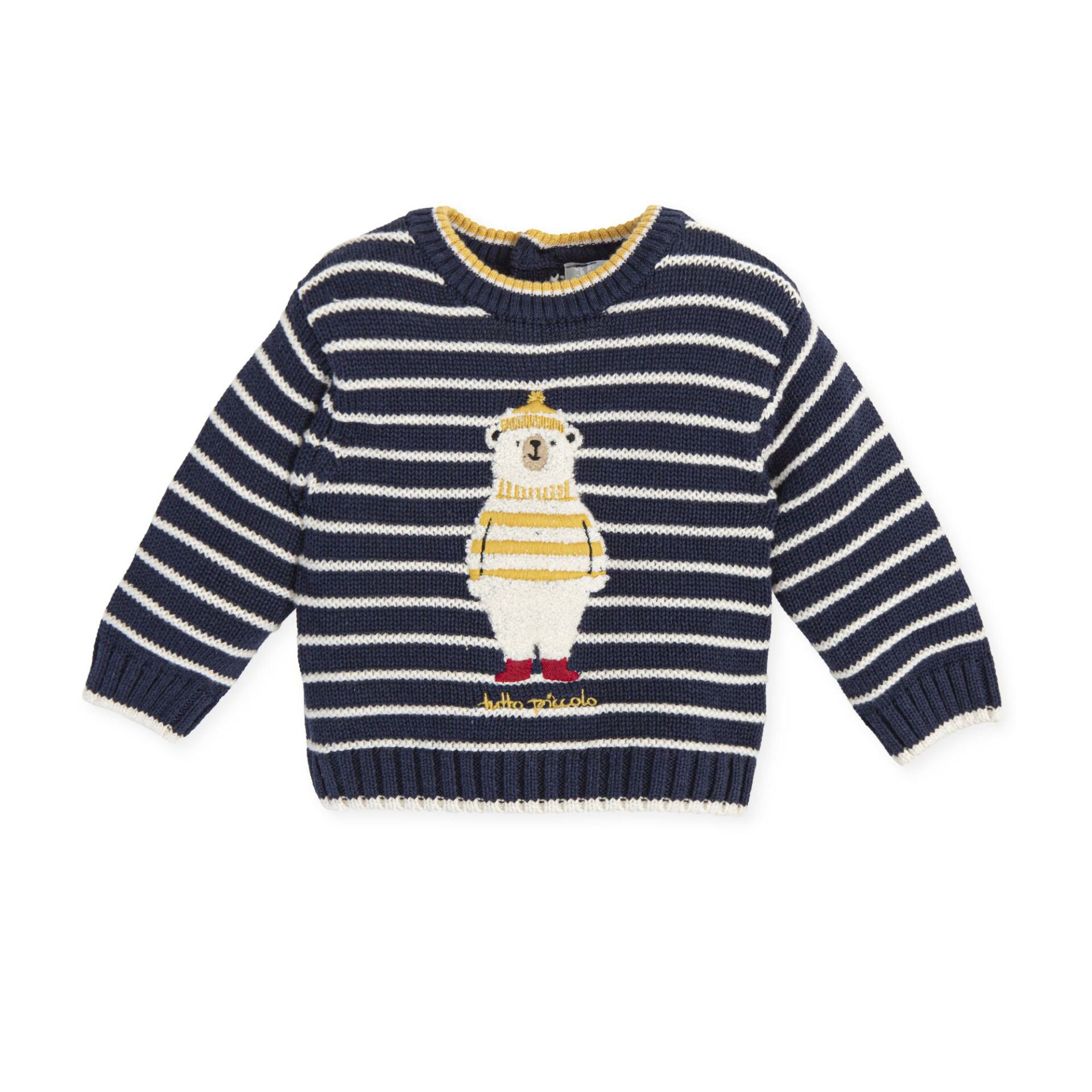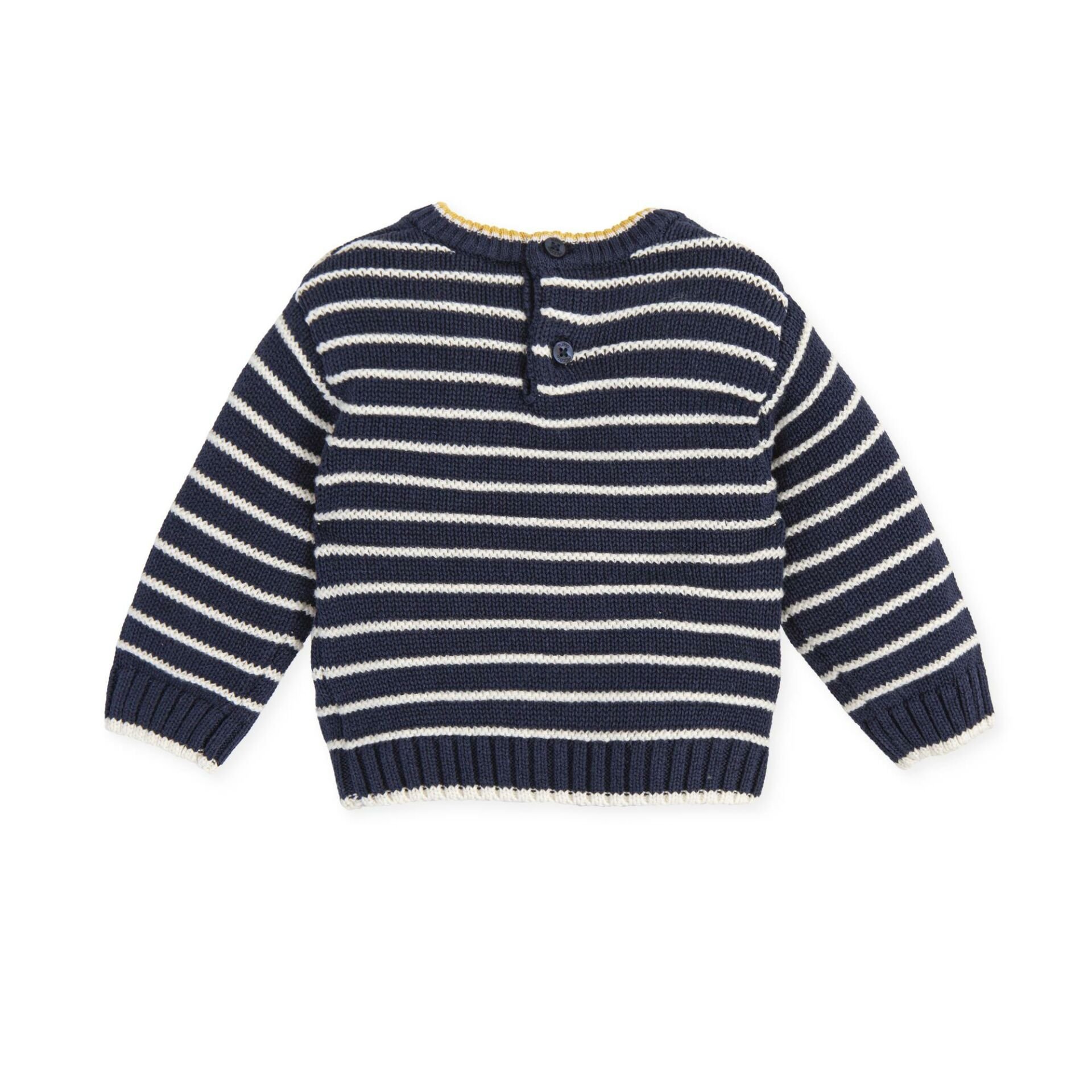 - Yakası sarı şerit detaylı, bisiklet yaka kazak.